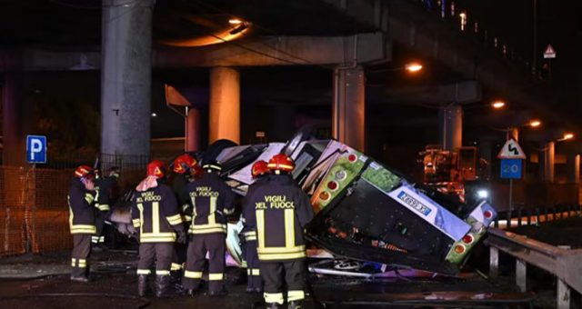 জানা যায়, বাসটি ফ্লাইওভার থেকে মেস্ত্রে জেলার রেলপথের কাছে পড়ে যায়, যা একটি সেতুর মাধ্যমে ভেনিসের সঙ্গে সংযুক্ত। ফ্লাইওভার থেকে নিচে পড়ার পরপরই বাসটিতে আগুন ধরে যায়। এতে অনেকে দগ্ধও হন।