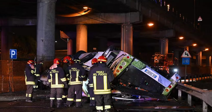 ইতালির ভেনিসে ফ্লাইওভার থেকে একটি বাস নিচে পড়ে অন্তত ২১ জন নিহত হয়েছেন। তাদের মধ্যে দুই শিশুও আছেন। আহত হয়েছেন আরও কয়েকজন। দেশটির স্থানীয় সময় মঙ্গলবার রাত পৌনে ৮টার দিকে এই দুর্ঘটনা ঘটে। হতাহতদের মধ্যে বিভিন্ন দেশের নাগরিকও আছেন। খবর বিবিসির।