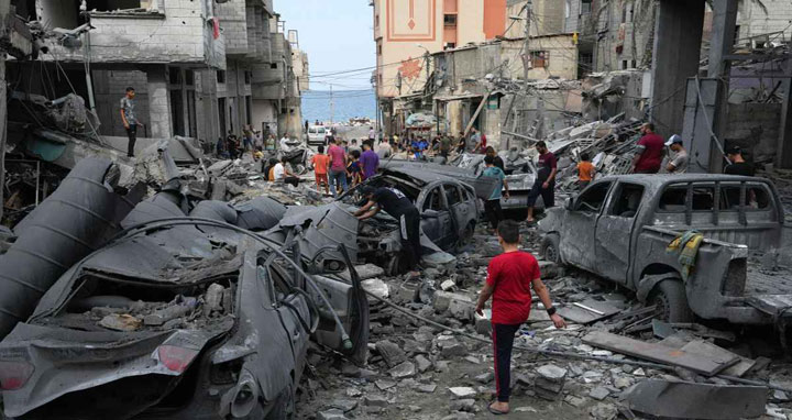 ফিলিস্তিনের মুক্তি আন্দোলনের সশস্ত্র গোষ্ঠী হামাসের হামলার জবাবে শনিবার থেকে গাজায় বোমা হামলা চালাচ্ছে ইসরায়েলের বিমানবাহিনী। এরই মধ্যে গতকাল সোমবার উপত্যকাটি সম্পূর্ণভাবে অবরুদ্ধ করার ঘোষণা দেওয়া হয়েছে। গাজায় স্থল অভিযানের জন্য সেনা সমাবেশও ঘটানো হয়েছে। তিন লাখ রিজার্ভ সেনাকে বাহিনীতে যুক্ত করেছে ইসরায়েল।