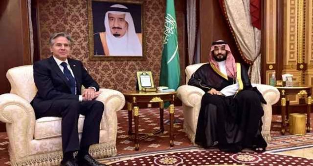 ইসরায়েলের সঙ্গে হামাসের চলমান সংঘাতের মধ্যেই সৌদি আরবের প্রধানমন্ত্রী ও ক্রাউন প্রিন্স মোহাম্মদ বিন সালমানের সঙ্গে দেখা করেছেন মার্কিন পররাষ্ট্রমন্ত্রী অ্যান্টনি ব্লিঙ্কেন। আরব সফরের অংশ হিসেবে রিয়াদে যুবরাজ মোহাম্মদ বিন সালমানের প্রাসাদে তার সঙ্গে দেখা করেছেন ব্লিঙ্কেন।