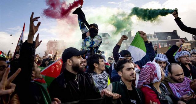 রোববার ফিলিস্তিনের স্বাধনিতা ও সেখানকার জনগণের পক্ষে ইউরোপের সবচেয়ে বড় মিছিলটি হয়েছে নেদারল্যান্ডসের রাজধানী আমস্টারডামে। মার্কিন সংবাদমাধ্যম সিএনএন জানিয়েছে, প্রায় ১৫ হাজার মানুষ অংশ নিয়েছিলেন আমস্টারডামের মিছিলে। সিএনএনের প্রতিবেদনে আরও বলা হয়েছে, হামাসের পতাকা বহন, পুলিশেল ওপর হামলার চেষ্টা ও মুখ ঢেকে পদযাত্রায় অংশ নেওয়ায় মিছিল থেকে ৩ জনকে গ্রেপ্তার করেছে আমস্টারডাম পুলিশ।