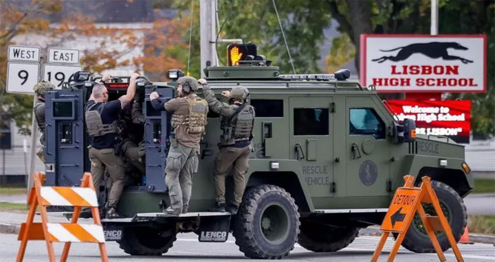 বৃহস্পতিবার রাতে বোডোইনে একটি বাড়িতে অভিযান চালিয়েছে পুলিশ। এই বাড়িটি হামলাস্থল লিউয়িসটন থেকে ২০ মিনিটের গাড়ি চালানোর পথ। এর আগের দিন রাতে লিউয়িসটনে ওই বন্দুক হামলার ঘটনা ঘটে।