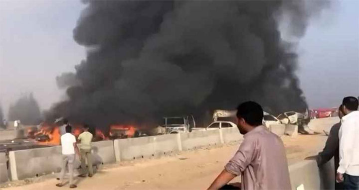 আল আহরামের প্রতিবেদনে আরও বলা হয়েছে, ২৯টি গাড়ির মধ্যে সংঘর্ষ হয়েছে। এর মধ্যে একটি যাত্রীবাহী বাসসহ ছয়টি গাড়ি আগুনে পুড়ে গেছে। এতে আরও বলা হয়, দুর্ঘটনায় অন্তত ১৮ জন দগ্ধ হয়ে মারা গেছে।