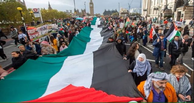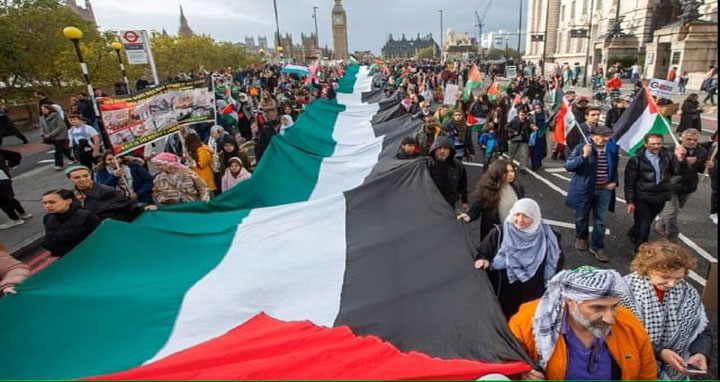 ব্রিটিশ মিডিয়া অনুসারে প্রায় ১ লাখ লোক লন্ডনে ‘মার্চ ফর প্যালেস্টাইনে’ যোগ দেয়, পুলিশের সাথে বিক্ষোভকারীদের সংঘর্ষের খবরও জানিয়েছে ব্রিটিশ মিডিয়া।