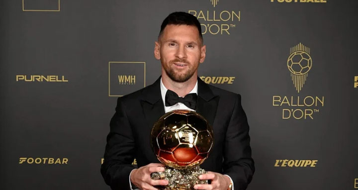 ম্যানচেস্টার সিটির নরওয়েজীয় তারকা আর্লিং হালান্ড এবং পিএসজির ফরাসি তারকা কিলিয়ান এমবাপ্পেকে পেছনে ফেলে ইতিহাসের সর্বোচ্চবার ইউরোপের সবচেয়ে সম্মানজনক পুরস্কার ব্যালন ডি’অর জিতেছেন মেসি।