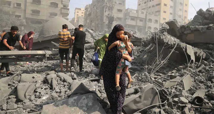 জাতিসংঘের নেতারা বলেছেন, ‘প্রায় এক মাস ধরে বিশ্ব ইসরায়েল এবং অধিকৃত ফিলিস্তিনি ভূখণ্ডের উদ্ঘাটন পরিস্থিতি দেখছে এবং ক্ষয়ক্ষতি ও ছিন্নভিন্ন প্রাণের ক্রমবর্ধমান সংখ্যায় মর্মাহত ও আতঙ্কের মধ্যে রয়েছে।’
