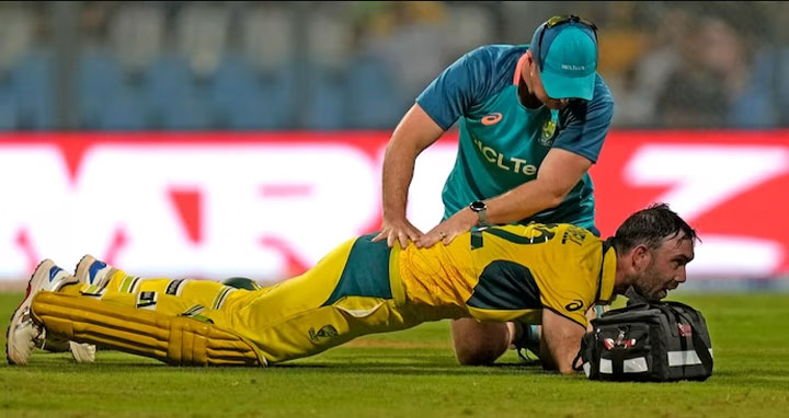 ওয়াংখেড়ে স্টেডিয়ামে মঙ্গলবার এক পর্যায়ে ক্র্যাম্পের কারণে যন্ত্রণাদায়ক ব্যথা ভোগ করেছিলেন ম্যাক্সওয়েল। ১২৮ বলে ২০১ রানের অবিশ্বাস্য ইনিংসের পথে এই যন্ত্রণার জন্য ব্যক্তিগত ১৪৭ রানে উভয় পায়ে ক্র্যাম্প নিয়ে পিচে পড়ে গিয়েছিলেন তিনি। শুয়ে থাকার সময় পিঠেও টান লাগে তার। তখন মাঠ ছাড়ার সিদ্ধান্তও নিয়ে ফেলেছিলেন। তবে শেষ পর্যন্ত খেলেছেন।