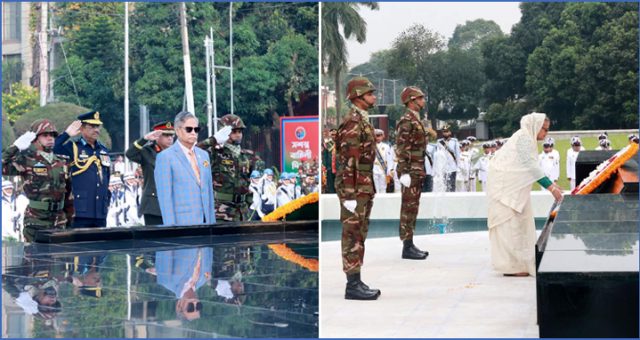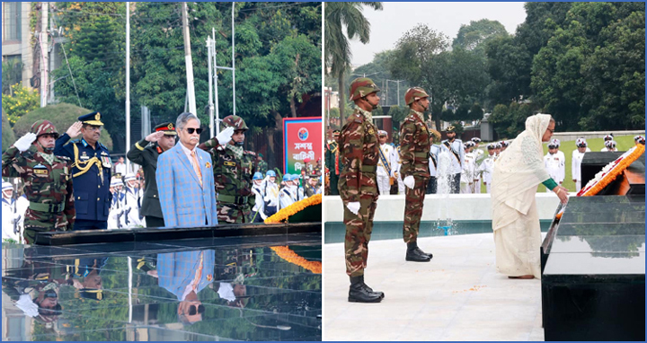 সশস্ত্র বাহিনী দিবসে শিখা অনির্বাণে পুষ্পস্তবক অর্পণ করে মুক্তিযুদ্ধে শহীদদের শ্রদ্ধা জানিয়েছেন রাষ্ট্রপতি মো.সাহাবুদ্দিন ও প্রধানমন্ত্রী শেখ হাসিনা।