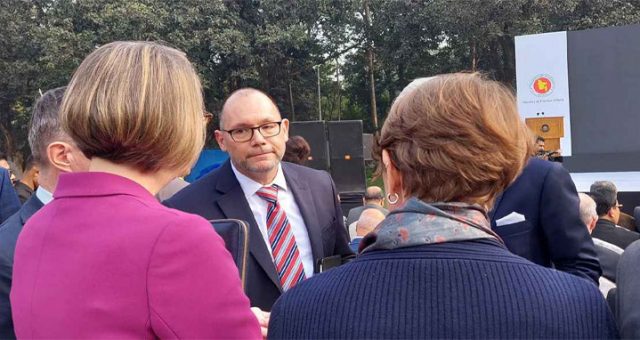 আগত অতিথিদের সঙ্গে শুভেচ্ছা বিনিময় করেছেন পররাষ্ট্র সচিব মাসুদ বিন মোমেন।
