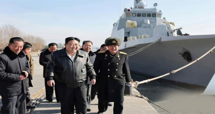 ‘কেসিএনএ’ বলেছে, কিম ‘আশা প্রকাশ করেছেন, ডকইয়ার্ডের কর্মীরা বিশ্ব পর্যায়ে সফলভাবে বড় যুদ্ধজাহাজ তৈরি করবে।’