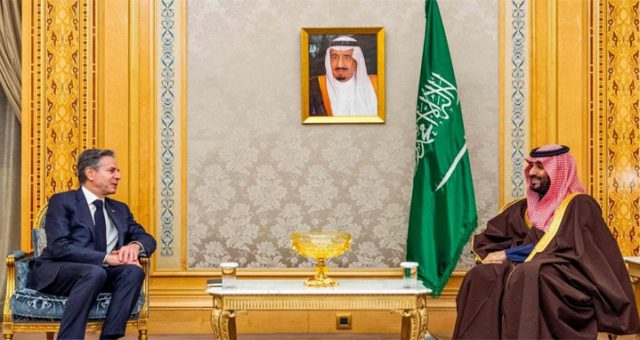 সৌদির রাষ্ট্রীয় টেলিভিশনের খবরে বলা হয়েছে, মোহাম্মদ বিন সালমান ও ব্লিঙ্কেন গাজায় ইসরায়েলের সামরিক অভিযান বন্ধসহ বর্তমান পরিস্থিতি নিয়ে কথা বলেছেন। অঞ্চলের নিরাপত্তা ও মানবিক পরিস্থিতি নিয়েও এই দুজনের মধ্যে আলোচনা হয়েছে।