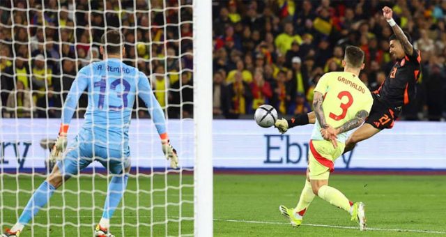 শনিবার (২৩ মার্চ) লন্ডন স্টেডিয়ামে আন্তর্জাতিক প্রীতি ম্যাচে কলম্বিয়ার কাছে ১-০ গোলে হেরেছে স্প্যানিশরা। কলম্বিয়ার হয়ে জয়সূচক গোলটি করেছেন ড্যানিয়েল মুনোজ।