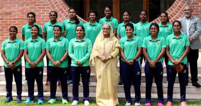 বাংলাদেশ ও অস্ট্রেলিয়ার নারী ক্রিকেট দলের সদস্যদের সঙ্গে শুভেচ্ছা বিনিময় করেছেন প্রধানমন্ত্রী শেখ হাসিনা।