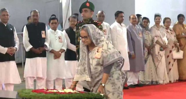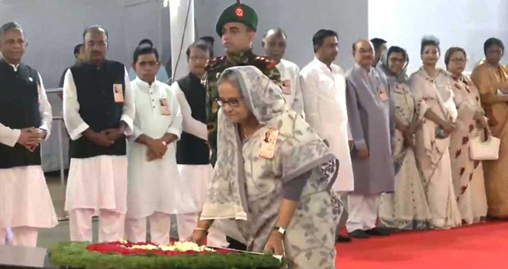 আওয়ামী লীগের জ্যেষ্ঠ নেতাদের সঙ্গে নিয়ে শেখ হাসিনা দলীয় প্রধান হিসেবে বঙ্গবন্ধুর প্রতিকৃতিতে আরেক দফা পুষ্পস্তবক অর্পণ করেন। পরে ঐতিহাসিক এ দিবস উপলক্ষে ঢাকা মহানগর আওয়ামী লীগ, ছাত্রলীগ, যুবলীগ, শ্রমিকলীগ, কৃষকলীগ, মহিলা আওয়ামী ও স্বেচ্ছাসেবক লীগসহ আওয়ামী লীগের সহযোগী সংগঠনের নেতাকর্মীরা বঙ্গবন্ধুর প্রতিকৃতিতে পুষ্পস্তবক অর্পণ করেন।