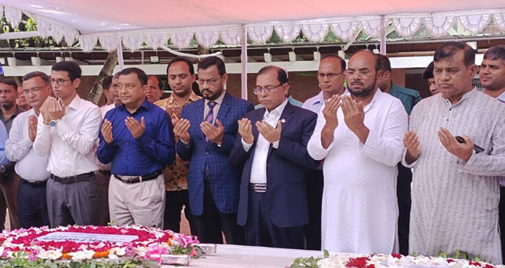 এরপর ৩ সচিব একসঙ্গে পবিত্র ফাতেহা পাঠ করে বঙ্গবন্ধু, ১৫ আগস্টের শহীদ ও মহান মুক্তিযুদ্ধে আত্মউৎসর্গকারী ৩০ লাখ শহীদদের রুহের মাগফিরাত কামনায় দোয়া ও মোনাজাতে অংশ নেন।