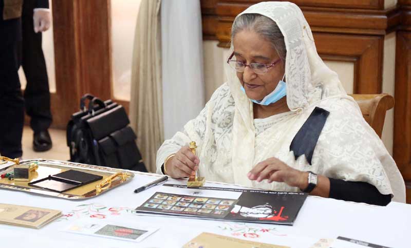 প্রধানমন্ত্রী আজ শুক্রবার সকালে আনুষ্ঠানিকভাবে তার সরকারি বাসভবন গণভবনে একটি অনুষ্ঠানে ১৮ টি স্ট্যাম্প (প্রতিটি পাঁচ টাকা) সম্বলিত একটি ৯০ টাকা মূল্যমানের স্ট্যাম্প শিটলেট, ১০ টাকা ও ১০০ টাকা মূল্যের দুটি উদ্বোধনী খাম এবং ৫ টাকা মূল্যের একটি ডেটা কার্ড উন্মোচন করেন। এ উপলক্ষ্যে একটি বিশেষ সিলমোহর ব্যবহার করা হয়।