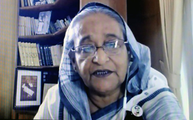 প্রধানমন্ত্রী গণভবন থেকে ভিডিও কনফারেন্সের মাধ্যমে আলোচনায় অংশ নেন।