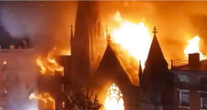 আগুনের সূত্রপাত হয় গির্জার পাশের একটি পাঁচ তলা খালি ভবন থেকে এবং তা দ্রুত গির্জায় ছড়িয়ে পড়ে। নিউইয়র্ক শহরের দমকল বিভাগের সহকারি প্রধান জন হজেন্স বলেন, অগ্নিকাণ্ডের ঘটনা তদন্ত করে দেখা হচ্ছে। গতকালের এ অগ্নিকাণ্ডে চারজন সামান্য আহত হয়েছে বলে বার্তাসংস্থা রয়টার্স জানিয়েছে।