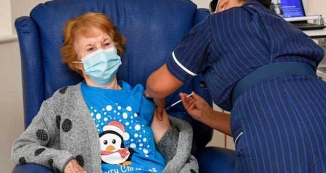 প্রথমবারের মতো ভ্যাকসিন নিয়েছেন ৯০ বছর বয়সী মার্গারেট কেনান। তিনি নর্দার্ন আয়ারল্যান্ডের এনিস্কিলেন শহরের বাসিন্দা।