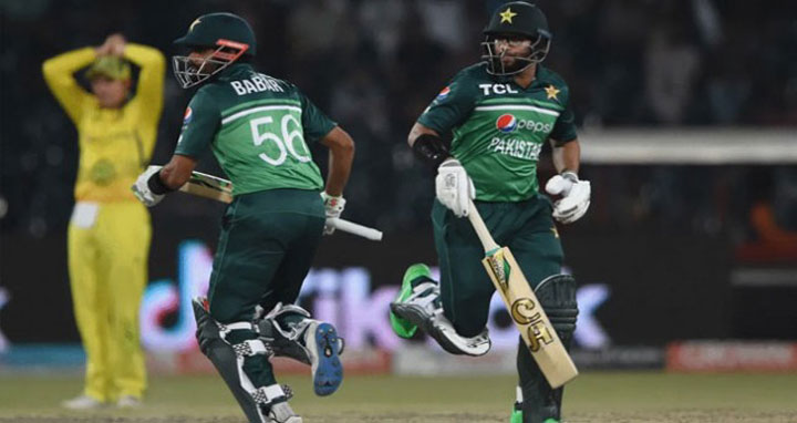 সহজ জয়ের টার্গেটে খেলতে নেমে উদ্বোধনী জুটি ভালো করতে পারেনি পাকিস্তানের। দলীয় ২৪ রানে এলিসের বলে লাবুশানের হাতে ক্যাচ দেন ফকর জামান (১৭)। তবে জয়ের জন্য বাকি কাজটুকু সারেন বাবর আজম ও ইমাম উল হক। ওয়ানডে ক্যারিয়ারের ১৬তম সেঞ্চুরি করে অপরাজিত থাকেন বাবর আজম।