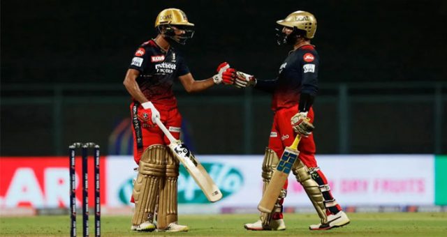 এরপর বিরাট কোহলি (৫), ডেভিড উইলি (৫) ও শেরফান রাদারফোর্ড অল্পেই ফিরে গেলে বিপদে পড়ে যায় ব্যাঙ্গালুরু। সেখান থেকে ষষ্ঠ উইকেট জুটিতে ৫.২ ওভারে ৬৭ রান যোগ করেন শাহবাজ ও কার্তিক। অল্পের জন্য ফিফটি মিস করা শাহবাজ আউট হন ৪ চার ও ৩ ছয়ের মারে ২৬ বলে ৪৫ রান করে।