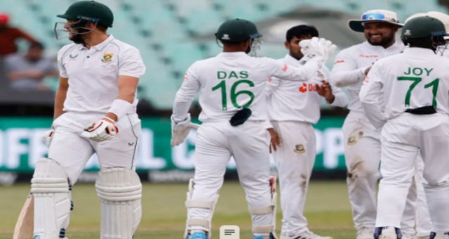 ১২তম ওভারের শেষ বলে খালেদ আহমেদ অফসাইডের বাইরের বলটি ড্রাইভ করতে গিয়ে ক্যাচ তুলে দেন উইকেটের পেছনে থাকা লিটন দাসের হাতে। এতেই প্রথম উইকেটের পতন ঘটে প্রোটিয়াদের। আর স্বস্তি ফেরে বাংলাদেশ শিবিরে।