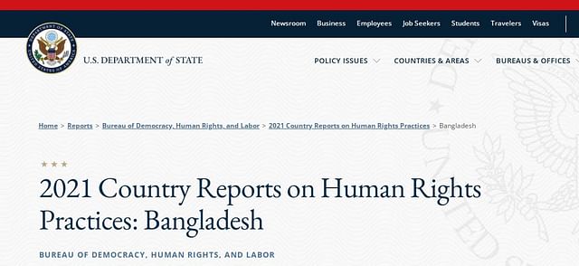 বাংলাদেশে আইনশৃঙ্খলা বাহিনী বিচারবহির্ভূত হত্যা ও গুমসহ নানা ধরনের নিপীড়নে জড়িত থাকলেও এর জন্য তাদের জবাবদিহি করা হয় না বলে যুক্তরাষ্ট্রের পররাষ্ট্র দপ্তরের একটি প্রতিবেদনে বলা হয়েছে। ২০২১ সালে বাংলাদেশে মানবাধিকার পরিস্থিতি নিয়ে মার্কিন পররাষ্ট্র দপ্তরের প্রতিবেদনটি মঙ্গলবার প্রকাশ করা হয়।