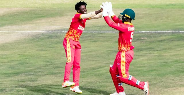 এর আগে টস জিতে ব্যাট করতে নেমে ৮ উইকেট হারিয়ে ১৫৬ রান সংগ্রহ করে জিম্বাবুয়ে। ব্যাট হাতে ঝড় তোলেন রায়ান বার্ল। ২৮ বলে ৫৪ রান করেন তিনি। ২০ বলে ৩৫ রান করেন লুক জংউই।
