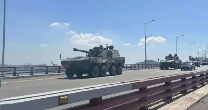 টুইটারে ‘ইয়িন সুরা’ নামক একটি হ্যান্ডল থেকে একটি ভিডিও ক্লিপ পোস্ট করা হয়েছে। যেখানে দেখা যাচ্ছে, চিনের ফুজিয়ানের ব্যস্ত রাস্তায় সারি সারি ট্যাঙ্ক পেরিয়ে যাচ্ছে। আরও একটি ভিডিও প্রকাশ্যে এসেছে যেখানে দাবি করা হয়েছে, পেলোসি তাইওয়ান পৌঁছনোর দিন সন্ধ্যাতেই তাইওয়ান সীমান্তের কাছে সেনাবাহিনী নিয়ে জমায়েত করতে শুরু করেছে চীন।