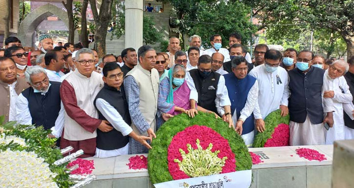 বনানী কবরস্থানে দলীয় নেতাদের নিয়ে প্রথমে প্রধানমন্ত্রী শেখ হাসিনার পক্ষে শ্রদ্ধা জানান ওবায়দুল কাদের। পরে দলের পক্ষ থেকে শ্রদ্ধা নিবেদন করেন তিনি। কেন্দ্রীয় নেতাদের মধ্যে উপস্থিত ছিলেন সভাপতিমণ্ডলীর সদস্য মতিয়া চৌধুরী, আবদুর রাজ্জাক, যুগ্ম সাধারণ সম্পাদক মাহবুবউল আলম হানিফ, আ ফ ম বাহাউদ্দিন নাছিম, সাংগঠনিক সম্পাদক আহমদ হোসেন, বিএম মোজাম্মেল হক, মির্জা আজম, আফজাল হোসেন, প্রচার ও প্রকাশনা সম্পাদক আবদুস সোবহান গোলাপ, বন ও পরিবেশ সম্পাদক দেলোয়ার হোসেন প্রমুখ।