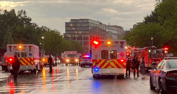 বৃহস্পতিবার সন্ধ্যায় এক সংবাদ সম্মেলনে ডিসি ফায়ার অ্যান্ড ইমার্জেন্সি মেডিক্যাল সার্ভিসেসের মুখপাত্র ভিটো ম্যাগিওলো বলেন, হোয়াইট হাউসের কাছে লাফায়েট পার্কে বজ্রপাত আঘাত হানে। এ ঘটনায় আহতদের অবস্থা খুবই আশঙ্কাজনক।