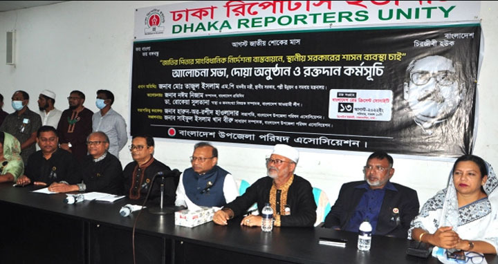 শনিবার (১৩ আগস্ট) ঢাকা রিপোর্টাস ইউনিটিতে ‘জাতির পিতার সাংবিধানিক নির্দেশনা বাস্তবায়নে স্থানীয় সরকারের শাসন ব্যবস্থা চাই’ শীর্ষক এক আলোচনা সভায় প্রধান অতিথির বক্তব্যে তিনি এ কথা বলেন।