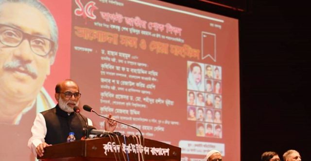 বৃহস্পতিবার (১৮ আগস্ট) রাজধানীর কৃষিবিদ ইনস্টিটিউশন বাংলাদেশ মিলনায়তনে জাতির পিতা বঙ্গবন্ধু শেখ মুজিবুর রহমানের ৪৭তম শাহাদতবার্ষিকী উপলক্ষে শেরেবাংলা কৃষি বিশ্ববিদ্যালয় অ্যালামনাই অ্যাসোসিয়েশন আয়োজিত আলোচনা সভায় মন্ত্রী এ আহ্বান জানান।