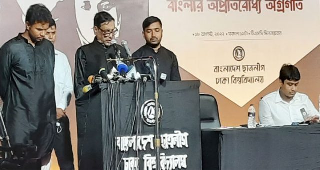 আজ বৃহস্পতিবার (১৮ আগস্ট) দুপুরে ঢাকা বিশ্ববিদ্যালয়ের (ঢাবি) টিএসসিতে ঢাবি ছাত্রলীগ আয়োজিত ‘পিতার শোক, কন্যার শক্তি : বাংলার অপ্রতিরোধ্য অগ্রগতি’ শীর্ষক আলোচনা সভায় প্রধান অতিথির বক্তব্যে তিনি এসব কথা বলেন।