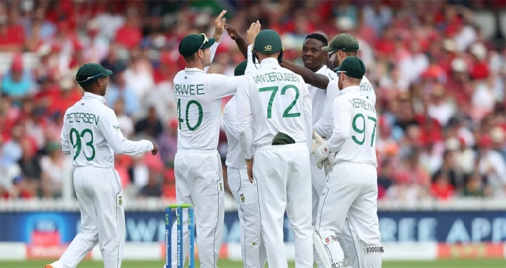 প্রোটিয়া পেসার কাগিসো রাবাদা ৫২ রান খরচায় একাই নিয়েছেন ৫ উইকেট। এছাড়া অ্যানরিচ নর্টজে ৩টি এবং মার্কো জানসেন নেন ২ উইকেট।