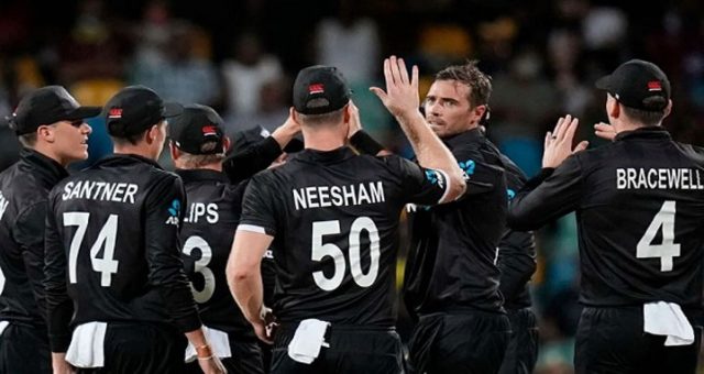 কিউই ওপেনার ফিন অ্যালেন অল্পের জন্য সেঞ্চুরি বঞ্চিত হন। জেসন হোল্ডারের বলে বোল্ড হওয়ার আগে তিনি ১১৭ বলে ৭ চার ও ৩ ছক্কায় ৯৬ রান করেন। ড্যারেল মিচেল ৪১ ও মিচেল স্যান্টনার অপরাজিত ২৬ রান করেন। নিউজিল্যান্ডের আর কোনো ব্যাটার দুই অঙ্কের ঘরে পৌঁছাতে পারেননি।