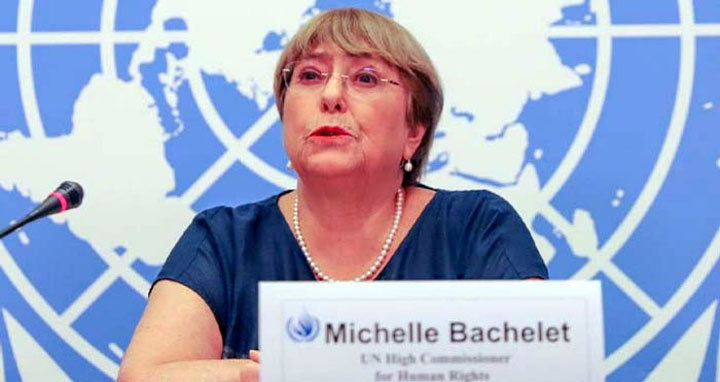 ৩১ আগস্ট জাতিসংঘের মানবাধিকার কমিশনের প্রধান হিসেবে চার বছরের মেয়াদ পূর্ণ হচ্ছে মিশেল ব্যাচেলেটের। এ উপলক্ষে এক সংবাদ সম্মেলনে জাতিসংঘের দৃষ্টিতে নিজের মেয়াদে বিশ্বের বিভিন্ন দেশের মানবাধিকার পরিস্থিতির কথা তুলে ধরেন তিনি।