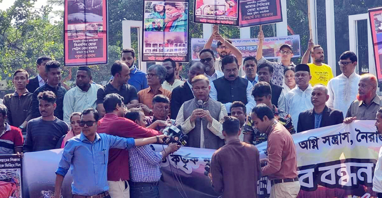 শনিবার (১০ ডিসেম্বর) দুপুরে কেন্দ্রীয় শহীদ মিনারের পাদদেশে বিএনপি-জামায়াত কর্তৃক মানবাধিকার লঙ্ঘন, মানুষ পোড়ানো, অগ্নিসন্ত্রাসী ও হুকুমদাতাদের বিচারের দাবিতে আয়োজিত মানববন্ধনে প্রধান অতিথির বক্তৃতায় তিনি এসব কথা বলেন। ‘অগ্নিসন্ত্রাসের আর্তনাদ’ নামে একটি সংগঠন এ মানববন্ধনের আয়োজন করে।