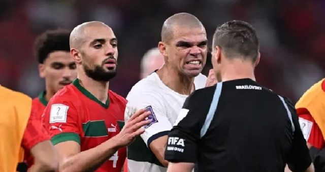 এরপর মরক্কোর বিপক্ষে পর্তুগালের ম্যাচ পরিচালনার দায়িত্বে থাকা আর্জেন্টাইন রেফারির ওপর ক্ষোভ প্রকাশ করেছেন পর্তুগালের ৩৯ বছর বয়সী সেন্ট্রাল ডিফেন্ডার পেপে। সাবেক রিয়াল মাদ্রিদ ডিফেন্ডারের ইঙ্গিত, রোনালদোকে বিদায় করতে মেসির সঙ্গে কথা বলে বাঁশিতে ফু দিতে এসেছিলেন তিনি।