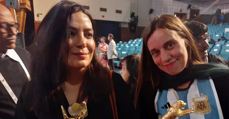 একদিকে মঞ্চে দাঁড়িয়ে ইরানের মহিলা পরিচালক নাহিদ হাসানজাদে জানিয়ে দিলেন তিনি ইরানে লড়তে থাকা মহিলাদের পাশে আছেন, অন্যদিকে আর্জেন্টিনার পরিচালক ভিরনা মলিনা দেশের নীল-সাদা জার্সি পরে মঞ্চে উঠে বার্তা দিতে চাইলেন দেশের জয়ে তিনি কতখানি আপ্লুত। মধ্যপ্রাচ্যের এক নারী এবং লাতিন আমেরিকার এক নারীর এ আবেগে হর্ষধ্বনি তোলেন উপস্থিত দর্শকেরা।