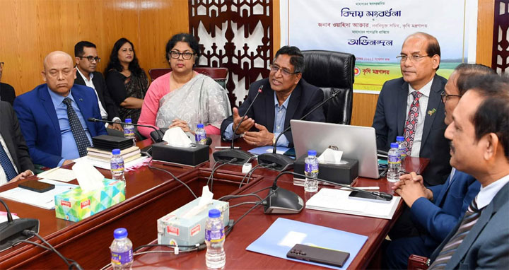 আজ বৃহস্পতিবার কৃষি মন্ত্রণালয়ে নতুন সচিব হিসেবে ওয়াহিদা আক্তারের যোগদান উপলক্ষে এক অনুষ্ঠানে কৃষিমন্ত্রী ড. মো. আব্দুর রাজ্জাক এসব কথা বলেন।