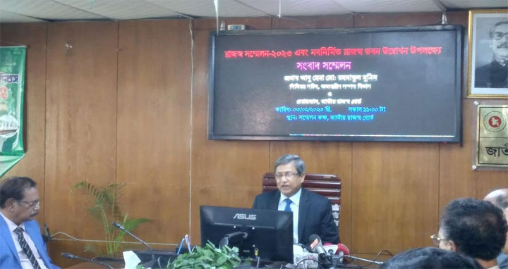 আজ শুক্রবার (৩ ফেব্রুয়ারি) রাজস্ব সম্মেলন-২০২৩ এবং রাজস্ব ভবন উদ্বোধন উপলক্ষে আয়োজিত সংবাদ সম্মেলনে এনবিআর চেয়ারম্যান আবু হেনা রহমাতুল মুমিন এ তথ্য জানিয়েছেন। রাজধানীর সেগুনবাগিচায় এনবিআরের সম্মেলন কক্ষে এ সংবাদ সম্মেলন অনুষ্ঠিত হয়।