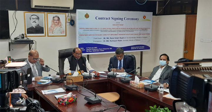 নূরুল ইসলাম সুজন বলেন, আমাদের অনেকগুলো গুরুত্বপূর্ণ প্রকল্পের ওপর সম্ভাব্যতা সমীক্ষা ও বিস্তারিত নকশা তৈরির কাজের লক্ষ্যে কনসালটেন্সি সার্ভিস নিয়োগ দেওয়া হচ্ছে। আমাদের সবচেয়ে গুরুত্বপূর্ণ হার্ডিঞ্জ সেতু শতবর্ষ পার করেছে। হার্ডিঞ্জ ব্রিজের পাশাপাশি একটি নতুন সেতু নির্মাণের লক্ষ্যে যাচাইকরণ ও বিস্তারিত নকশা তৈরি, নারায়ণগঞ্জ-কুমিল্লা/লাকসাম রুটে কর্ড লাইন নির্মাণ করা। এটি নির্মিত হলে ঢাকা-চট্টগ্রামের দূরত্ব ৯১ কিলোমিটার কমে যাবে। বঙ্গবন্ধু সেতু পূর্ব-তারাকান্দি-জামালপুর-দেওয়ানগঞ্জ বাজার সেকশনে বিদ্যমান মিটারগেজ লাইনকে ডুয়েল গেজে রূপান্তর প্রকল্প, যশোর-বেনাপোল রুটে বিদ্যমান লাইনের সমান্তরাল একটি ব্রডগেজ লাইন নির্মাণ প্রকল্প, ভৈরব বাজার-ময়মনসিংহ সেকশনে বিদ্যমান মিটারগেজ লাইনকে ডুয়েল গেজ অথবা ব্রডগেজ লাইনে রূপান্তর প্রকল্প, সান্তাহার-বগুড়া-কাউনিয়া-লালমনিরহাট সেকশনে বিদ্যমান মিটারগেজকে ব্রডগেজ লাইনে রূপান্তরকরণ প্রকল্পসহ মোট ১১টি প্রকল্পের সম্ভাব্যতা সমীক্ষা ও বিস্তারিত নকশা তৈরির লক্ষ্যে চুক্তি স্বাক্ষরিত হলো।