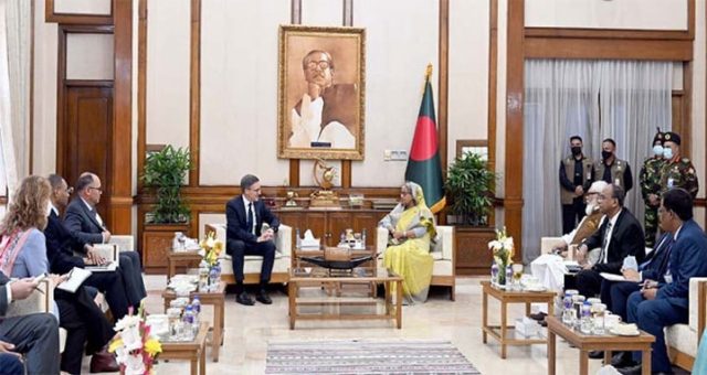 যুক্তরাষ্ট্রের পররাষ্ট্র দপ্তরের কাউন্সেলর ডেরেক শোলের নেতৃত্বে একটি মার্কিন প্রতিনিধিদল প্রধানমন্ত্রীর সরকারি বাসভবন গণভবনে তাঁর সঙ্গে সৌজন্য সাক্ষাৎ করতে গেলে তিনি এ কথা বলেন।