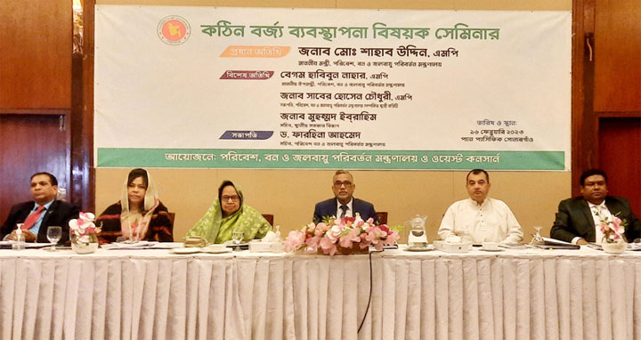 পরিবেশ, বন ও জলবায়ু পরিবর্তন মন্ত্রী মো. শাহাব উদ্দিন বলেছেন, সরকার প্রণীত টেকসই প্লাস্টিক ব্যবস্থাপনা একশন প্ল্যান অনুসরণ করে ২০২৬ সনের মধ্যে একবার ব্যবহারযোগ্য প্লাস্টিকের ব্যবহার ৯০ শতাংশ কমানোর লক্ষ্যে আন্তরিকভাবে কাজ করা হচ্ছে। আজ বৃহস্পতিবার প্যান প্যাসিফিক হোটেল সোনারগাঁও এ আয়োজিত কঠিন বর্জ্য ব্যবস্থাপনা বিষয়ক সেমিনারে প্রধান অতিথির বক্তব্যে পরিবেশমন্ত্রী এসব কথা বলেন।