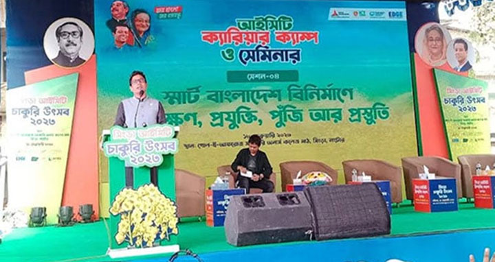 আজ শনিবার নাটোরের সিংড়া গোল-ই-আফরোজ সরকারি কলেজ মাঠে দিনব্যাপী আইসিটি চাকরি উৎসবের সমাপনী অনুষ্ঠানে প্রধান অতিথির বক্তব্যে তিনি এ কথা বলেন।