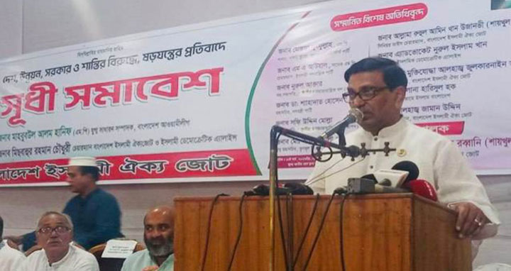 শুক্রবার (১০ মার্চ) বিকালে জাতীয় প্রেস ক্লাব অডিটোরিয়ামে ‘দেশ, উন্নয়ন, সরকার ও শান্তির বিরুদ্ধে ষড়যন্ত্রের প্রতিবাদে’ বাংলাদেশ ইসলামী ঐক্যজোটের এক সুধী সমাবেশে এসব কথা বলেন তিনি।