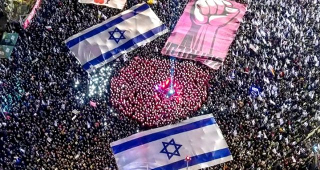 নেতানিয়াহুর আইনী সংস্কার পরিকল্পনার প্রতিবাদ আর বিক্ষোভে ফেটে পড়ছে তেল আবিব। দেশটির কয়েক লাখ মানুষ অংশ নিয়েছে বিক্ষোভ সমাবেশে। কেউ কেউ বলছে, দেশটির ইতিহাসে সবচেয়ে বড় প্রতিবাদ সমাবেশ এটি।