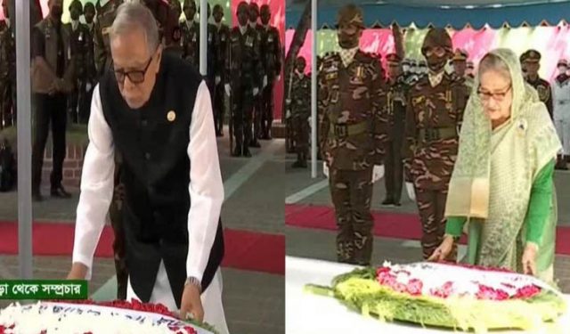 শুক্রবার (১৭ মার্চ) সকাল সাড়ে ১০টার দিকে টুঙ্গিপাড়ায় পৌঁছে বঙ্গবন্ধুর সমাধিতে শ্রদ্ধা জানান রাষ্ট্রপতি ও প্রধানমন্ত্রী।