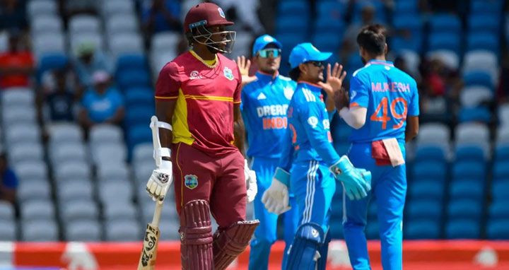 জয়ের জন্য ৩৫২ রান করতে নেমে শুরু থেকেই নিয়মিত ব্যবধানে উইকেট হারায় ওয়েস্ট ইন্ডিজ। মুকেশের দাপুটে বোলিংয়ে ১৭ রানে ৩ উইকেট হারিয়ে ইনিংসের শুরুতেই কোণঠাসা হয়ে যায় ওয়েস্ট ইন্ডিজ। শেষ পর্যন্ত ওই চাপ আর সামলাতে পারেনি আয়োজকেরা। নিয়মিত ব্যবধানে উইকেট হারিয়ে ম্যাচ এবং সিরিজ হারলেন তারা।